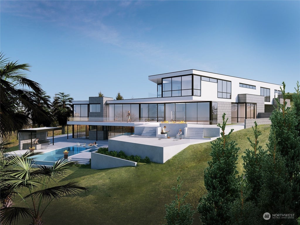 Once in a lifetime opportunity to complete a truly magnificent generational estate home in the heart of Clyde Hill with every amenity imaginable. One of the largest west-facing parcels remaining is just shy of an acre with gated driveway for ultimate privacy and security. Fully permitted multi-structure resort style estate was designed in collaboration between prestigious McCullough Architects and Bylington Development. Features include 21 car garage (12 stalls + 9 lifts), pool, cantina, sport court, detached guest/staff living quarters. Main home is 13,460sqft complemented with 828sqft carriage house and garage retreat. Expected construction time 17-20 months. No access permitted without appointment. Detailed plans available upon request.