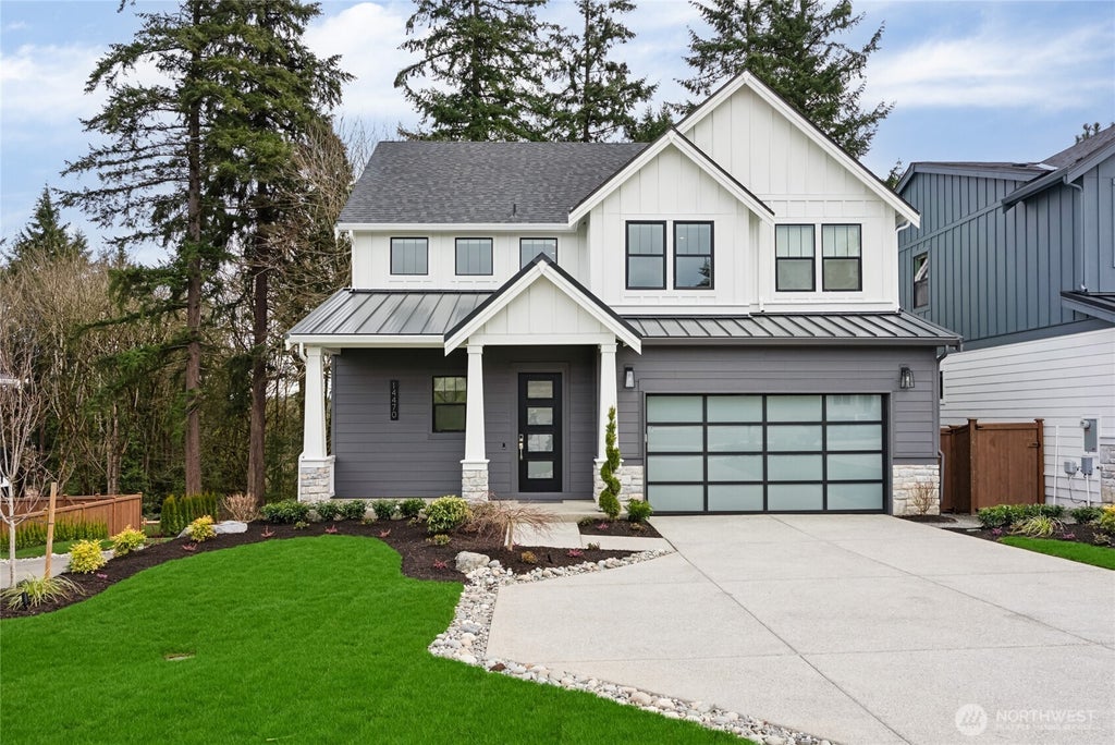 Thoughtfully designed, this home offers a functional layout with a harmonious indoor-outdoor connection, including covered rear patios for year-round enjoyment. A spacious daylight basement adds versatility, w/ a spacious bedroom + 3/4 bath offering excellent privacy for long term guests! Set on a private homesite w/ generous open space, this home is perfect for both relaxation & entertaining. This boutique community of just seven unique homes is situated just North of Kirkland in the heart of Woodinville Wine Country with the tranquility of peaceful surroundings yet close to major employers, shopping & dining! 10' Ceilings at the main level, motorized shades throughout + smart home features offering streamlined convenience! Lk WA Schools