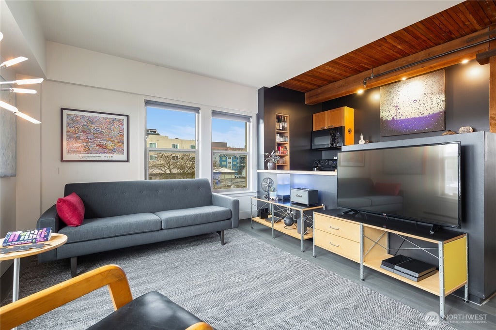 Looking for old world charm combined with the discerning eye of a designer to blend old and new in a fresh way? Look no further! Built in 1923, renovated in 1983, the Ambassador is a stunning building. Exposed original beams in the ceiling, angled walls, butcherblock counters, newly remodeled black-and-white bathroom, & frosted sliding doors blend the old and new beautifully together. This corner unit on the 5th floor sits high above the street, allowing light to stream in from two sides. The walk-in-closet provides a lot of in-condo storage. Plus, appreciate the additional large storage locker (5.5x7.5). 1 parking space in the gated garage as well. Blocks to light rail, downtown as well as SLU. Ask about a rate-buydown.