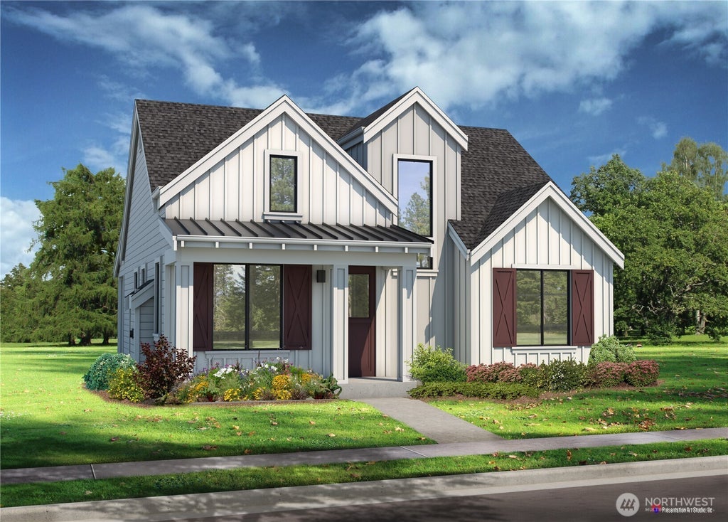 The Villages of Garrison Creek is proud to have a NEW neighbor! WELCOME Mill Creek Homes ...Fresh new design, Modern Craftsman, 1503 sq ft, beautiful finishes, home will be complete end of summer. First one to be started on the gazebo circle. Sit on your front porch and visit with your neighbor. Great room with vaulted ceiling, electric fireplace with mantle and stone surround, ceiling fan to gently move the air. Kitchen that would delight any serious chef! Gather round the quartz island, plenty room to create meals together or just visit. Full tile backsplash, under cabinet lighting, custom Mission alder Huntwood® cabinets throughout. Wood wrapped windows, (main floor & primary) pre-wired for EV. Call for all details.