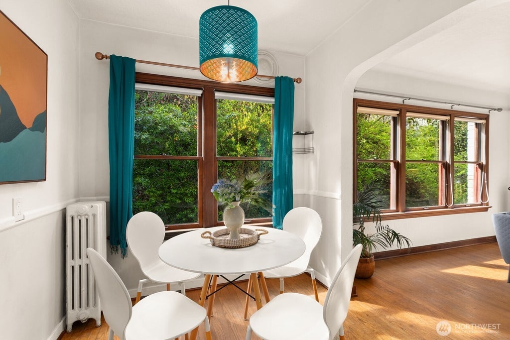 This spacious one-bedroom unit overlooks lovely garden and green space. Unit highlights include oak floors, picture rails, arched doorways, coved ceilings & hexagon tiling. Updates include fresh paint and an updated bathroom. All updates have been mindfully done to maintain period details and charm. This well-run co-op building allows for urban living and community feel. HOA fee covers property taxes, W/S/G, and heating. Walking distance to both Queen Anne and South Lake Union allows easy access to shopping, restaurants and retail.