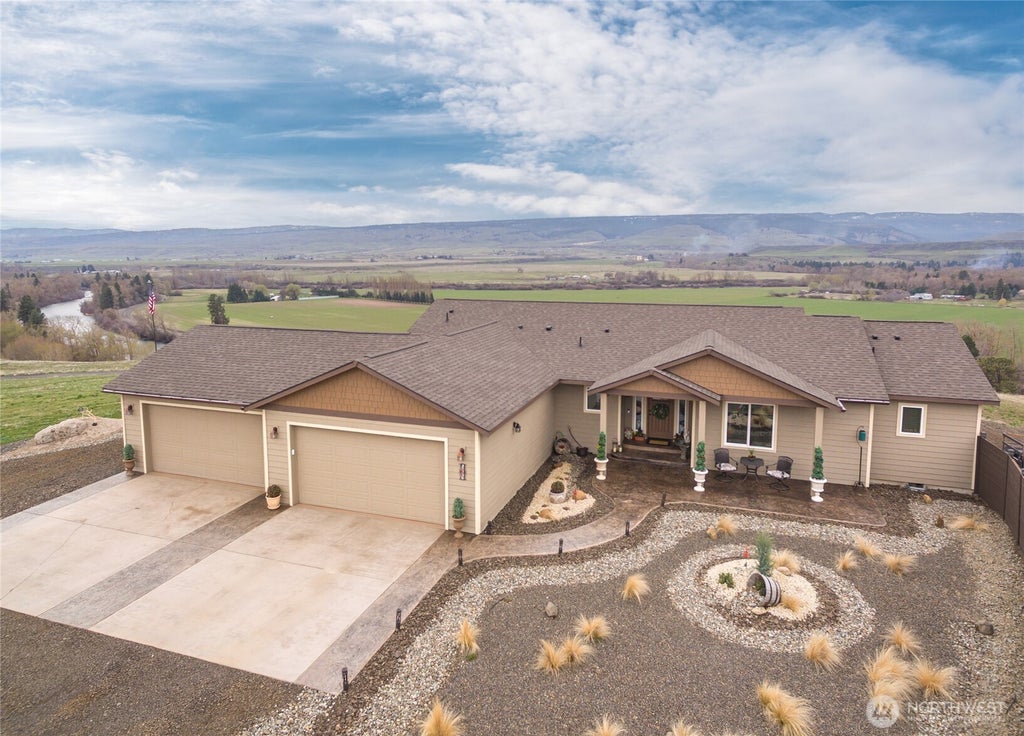 Home for all seasons! Spring, Summer, Fall and Winter. Motivated Sellers! 4.82-acre property offers peace and privacy in Deer Valley Estates plus rare access to the Yakima River. Large home features open-concept and seamlessly connects dining, living, and kitchen. Large windows allow natural light to flood into every room. Kitchen boasts quartz counters, stainless appliances, breakfast bar, and copper sink/exhaust fan. French doors lead out to backyard, offering breathtaking valley and river views. Bonus backyard gazebo, swings + fireplace. Primary bedroom includes walk-in closet and large ensuite. Yakima River is known for the best fly fishing in the state, along with water sports and biking/hiking trails, all minutes from your doorstep.