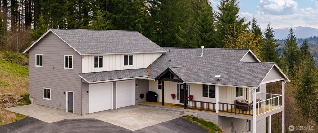 Priced $150K below County assessed value and priced to sell, this 2019 modern 3,312 sq ft residence is a rare North Clark County offering—combining modern architecture, vaulted ceilings, and sweeping views of the Coastal Range, sunsets, and Portland city lights. Set on 5 private acres, just 15 minutes to Battle Ground,WA and 40 minutes to PDX, it offers four bedrooms, 3.5 baths, a bonus room, chef’s kitchen, main-level primary suite, guest ensuite, and expansive covered outdoor living. Starlink internet, RV hookups, and room for a shop elevate both function and lifestyle. Homes this new, this well-built, with this view and privacy are seldom available—instant equity.