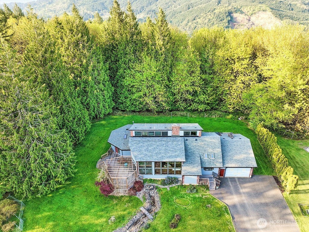 Kelso -- Custom Built -- Original Owner -- 5.33 Acres -- 3895 Sqft -- 3 Bedroom / 2.5 Bathroom -- Living Room w/Fireplace -- Kitchen w/Pantry -- Dining Room -- Large Open Loft Bonus Room -- Family Room -- Kitchenette Off Family Room -- Craft Room -- AWESOME Green Room/Atrium -- Primary Bedroom w/ Full Bathroom and Large Double Closet -- Vaulted -- Skylights -- Heat Pump & AC -- Thermostat Controlled Shades -- HardiPlank Siding -- Oversized Double Garage w/ Openers & Workshop Area -- RV Parking -- Deck -- Yard -- Garden Space -- Fruit Trees 3 Pears & 2 Apple -- Blueberry Bush -- Septic & Well -- Large Storage/Mechanical Room off Garage -- COULD EASILY BE MULTI-GENERATION LIVING w/ Separate Living Quarters -- 40 Minutes to Vancouver/PDX Area