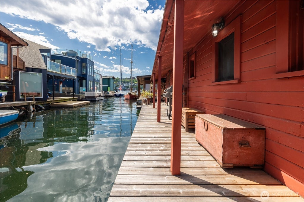 Great location in Eastlake, step into life afloat in this adorable one bedroom floating home! New flooring and interior paint make this the perfect canvas to start living the floating lifestyle you have been craving. Kayak, SUP or swim right off your deck. Large 41'x26' float with awesome southern exposure, a wrap-around covered deck, tons of storage indoors and out, and a large bedroom - enjoy it as is or build your dream home with the ~1,100 square foot footprint. It's third from the end and has lots of opportunity to live in as is or to secure for future expansion. Leased slip costs $1,357 a month and covers your moorage for your home, water, sewer, and garbage.