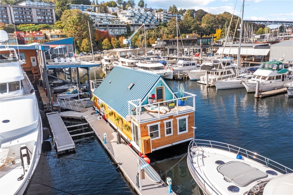 Exceptional Floating Home on Lake Union (FOWR #740) Renovated, this stunning 4-bedroom, 2-bath residence is perfectly moored on South Lake Union. The open-concept features a sunlit living room, modern kitchen with stainless steel appliances, and a spacious dining area. Enjoy serene waterfront living just minutes from Downtown Seattle, Fremont, and the University. Annual moorage lease $2,000/mo includes Electricity, Water, Trash, Secured Marina, Community showers+bathrooms, extra storage. Two decks surrounded by the best of water front lake life. Min to boutique shops, restaurants, and local charm- Feel a world away on the tranquil water lifestyle that is packed with premium amenities. On-demand water heater, skylights + in-unit washer/dryer