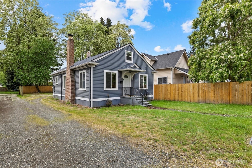 Welcome to this delightful starter home located in the heart of Downtown Kent—just minutes from major freeways, Kent Station, the Interurban Trail, shopping, and schools. This well-maintained residence offers 3 bedrooms and 1.5 bathrooms, with two bedrooms conveniently located on the main level and a spacious third bedroom upstairs featuring a half bath and closet. The inviting living room boasts a cozy wood-burning fireplace and large windows that flood the space with natural light. Enjoy stylish laminate flooring throughout, and a thoughtfully updated kitchen equipped with modern Shaker cabinetry, granite countertops, and tiled flooring that extends into the dining area. The expansive backyard is ideal for outdoor entertaining, with ample