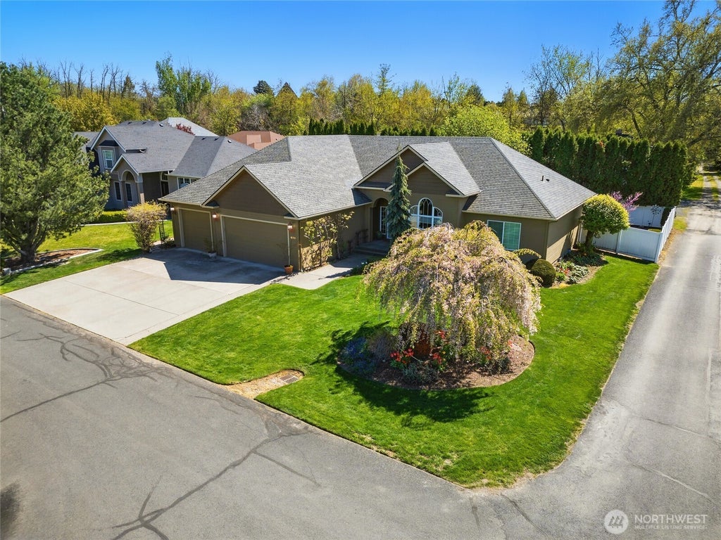 QUIET setting and GREAT NEIGHBORHOOD, close to shopping and Lyons Park. Bedrooms split, and one BR could be an office, music room, or BR. Amenities include a jetted tub for soaking, ceiling fans, a central Vac. System, a forced air heat pump with a gas backup, a 3-car garage with abundant storage, a 220V plug-in garage on the east side, and a beautiful gas FP. The home features a new LG fridge (2025), an eating bar, LARGE PANTRY, formal dining, and an informal eating area. Great, fully fenced back yard with a raised garden bed, pet potential, and low maintenance & manicured with an UG timed sprinklers. LG primary ensuite w/lg. walk-in closet. All of the HIGH CEILINGS add to the charm. You need to see it for yourself!