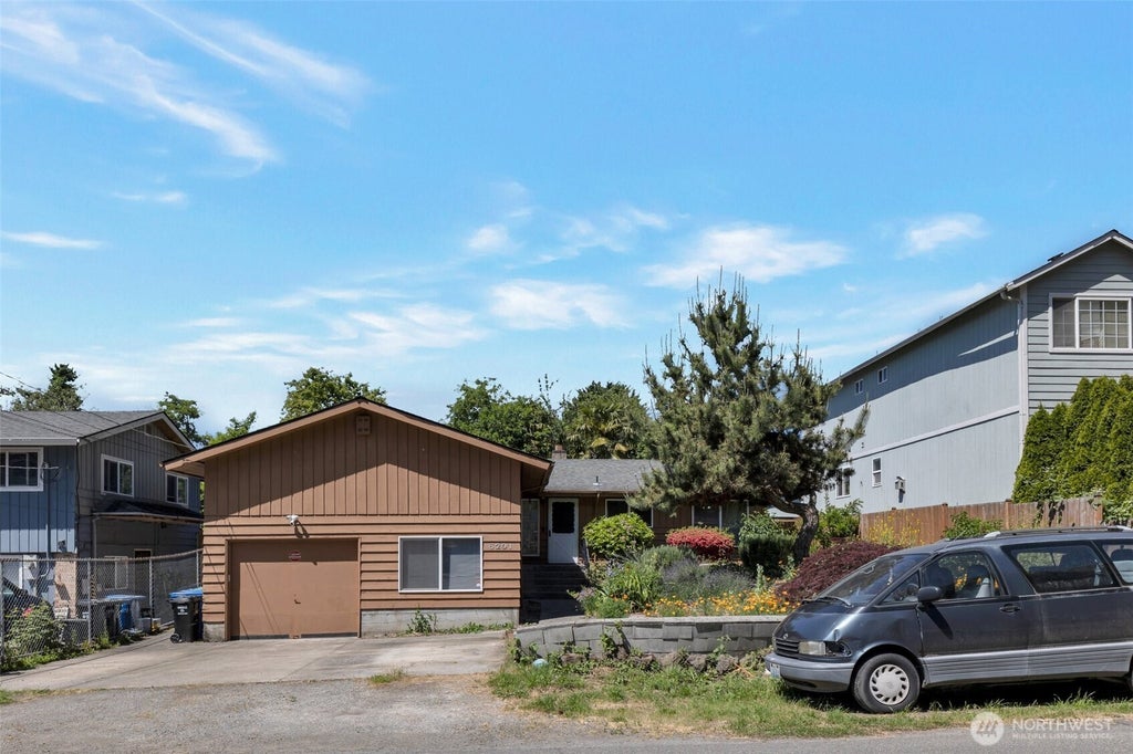 Light and bright well-built rambler home on quiet Seward Park area street. Living room with cozy wood-burning fireplace, large picture windows overlooking the lush, private, fully-fenced, terraced backyard with exotic palm trees and entertainment sized deck. Dining room and kitchen with plenty of prep space and stainless appliances including gas range. Primary suite with 1/2 bath and two additional bedrooms and full-bath. Extra bonus room next to garage with laundry. Use as an extra bedroom, game/hobby or family room. Oversized 1-car garage with plenty of storage space. Easy access to conveniences, Seward Park and Brighton Park, light rail/transit, freeways, and downtown.