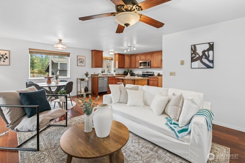 Beautiful Camano Island rambler featuring 3 bedrooms, 2 baths, and open-concept living near private beaches, state parks, boat launch, clubhouse, and scenic trails. Perfect for first-time home buyers, downsizers, or investors seeking energy-efficient, low-maintenance coastal living. Upgrades include Quadra-Fire fireplace, Daikin high-efficiency furnace, hybrid heat-pump water heater, Interlock metal roof, and updated Bausch appliances. Large yard, ADU or rental potential, short-term vacation use, RV parking, no ferry needed—live the island lifestyle year-round!