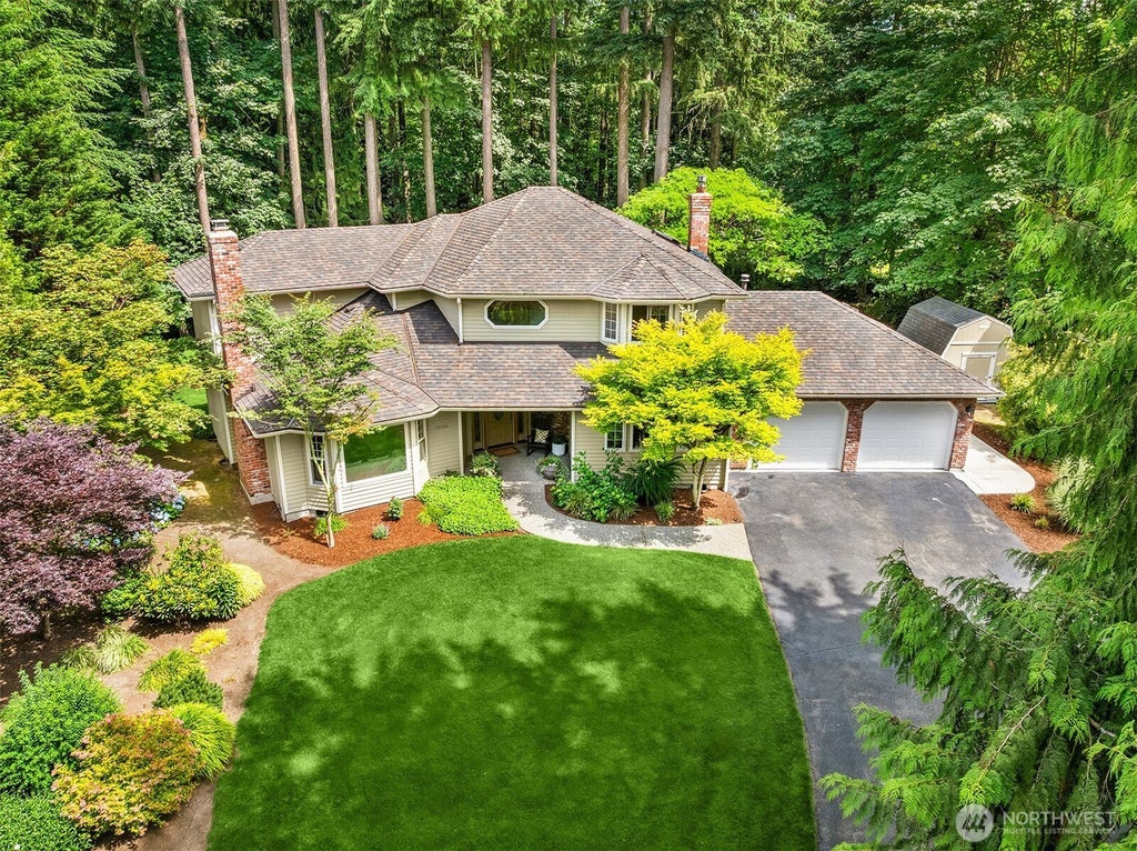 "The Pride of Serena Estates". One of the most desired subdivisions in Woodinville. It doesn't get any better than an impeccably maintained 4 bedroom, den, bonus room (main floor) 2 story floor plan on a flat & sunny horse acre lot accessed by a circular drive. New interior paint (walls, doors, trim). New carpet. Newer TL roof. Primary suite with upgraded lavish bath. Upgraded kitchen. Formal dining & living room with brick fireplace. Warm & inviting family room with a dramatic "Heat & Glow" gas insert. Light & bright Sunroom off breakfast nook surveys spectacular backyard that is luscious, quiet and private with sun-drenched patio, fire pit, expansive lawns & arbor set among majestic Evergreens. Award winning Northshore Schools
