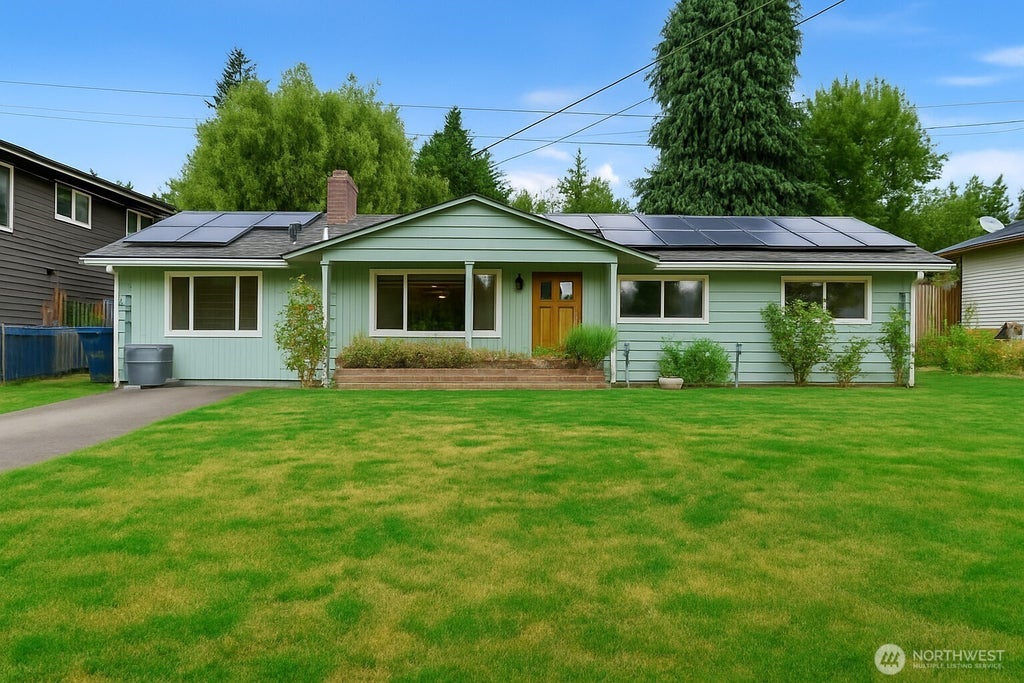 Come out and see this ideal rambler in desirable Lynnwood! Beautifully refinished hardwood floors greet you as you walk into one of two main living spaces. The semi-open concept living/dining/kitchen area is filled with light from the large windows and stately French doors. Updates abound from the large remodel in 2021 including solar panels, on demand water heater, new roof, and more! Outside you'll find a full fenced, flat yard with additional storage. Minutes to 405 or I5!