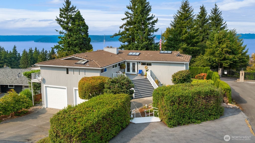 You must see and experience this home to understand how captivating it is! Located on a corner lot, on a quiet dead-end street you'll discover this light & spacious home is all about the VIEWS! One never tires of the stunning, ever-changing panoramas of the Puget Sound & mountains. The main floor offers generous, thoughtful living spaces; a huge primary suite, walk-in closet, full bath, 2nd bedroom & full bath, large laundry room, incredible living room, beautiful dining room & built-ins, a kitchen to inspire ( + large walk-in pantry), all complimented by windows galore, a wrap around deck. Lower level has a family room + a legal ADU with parking. Extra roomy garage w oversize doors & ready for your EV charger. A great place to call home!