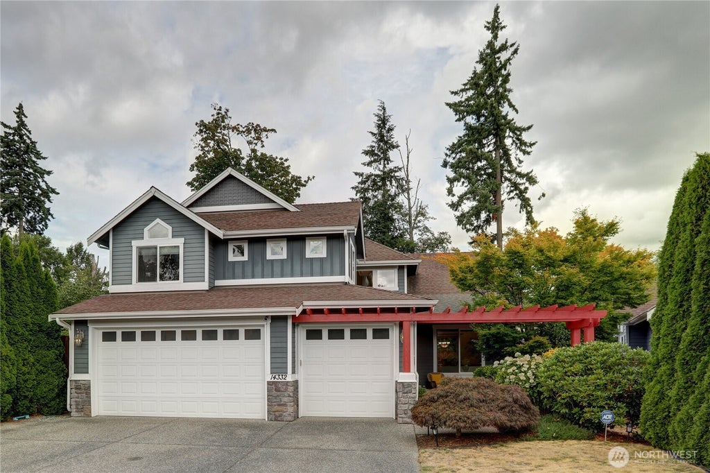 Discover an exceptional opportunity with a new, enticing price on this stunning Lake Stickney home. From the grand foyer to the soaring vaulted ceilings in the living room and the elegant tray ceiling in the dining room, this residence captivates. The upper floor features four spacious bedrooms, including a luxurious ensuite 5-piece bath and walk-in closet, along with a second full bathroom. The main level offers a cozy den/office, a ¾ bath, and a sprawling family room with a gas fireplace, seamlessly connected to a beautifully designed eat-in kitchen. Experience modern comforts like A/C, a 3-car garage, and a covered patio on a large, level lot, all nestled in a serene private driveway, just moments from I-5/405, light rail, and schools.