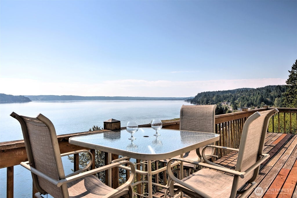 This view is really something! From inside the house it feels like you are hanging over beautiful Hood Canal. Bright and sunny, this home will delight you in so many ways. Lots of upgrades have been done - Corian counters in the kitchen and bathroom, new carpets, tile, paint, newer appliances, beautiful step-in shower, the list goes on and on. The primary bedroom has nice closet organizers, and a fantastic view, too. You can easily imagine yourself relaxing on the big deck enjoying the wildlife and scenes from this world-renown fjord! Located truly at the foot of the Olympic Mountains, every sort of recreational opportunities abound here-hiking, biking, fishing, camping, golf, swimming, kayaking, scuba diving, etc. Come see!