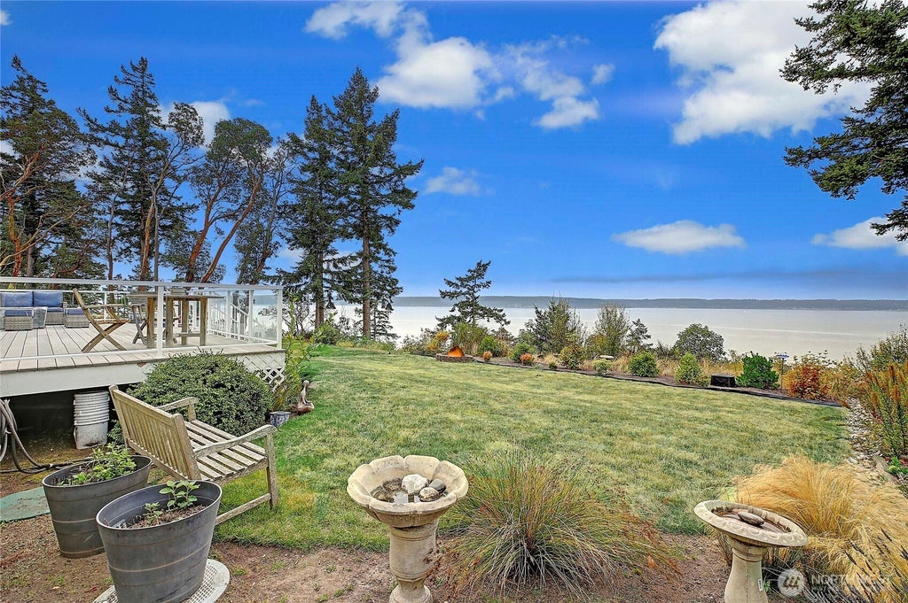 Experience island living at its finest in this west-side Camano view home, situated on 65 feet of level, high-bluff waterfront! Property stretches to the shoreline, offering a rare opportunity for true waterfront ownership. Custom-built, this rambler showcases thoughtful design & timeless craftsmanship, oriented to capture sweeping views of Saratoga Passage, Whidbey Island, Olympic Mountains, & west-side sunsets. Inside, the open-concept layout features granite countertops, hardwood floors, abundant windows, & seamless flow between living, dining, & outdoor spaces w/oversized deck extending the living space outdoors. From soaring eagles overhead to boats passing below, have a front-row seat to the beauty of the PNW. Welcome home!