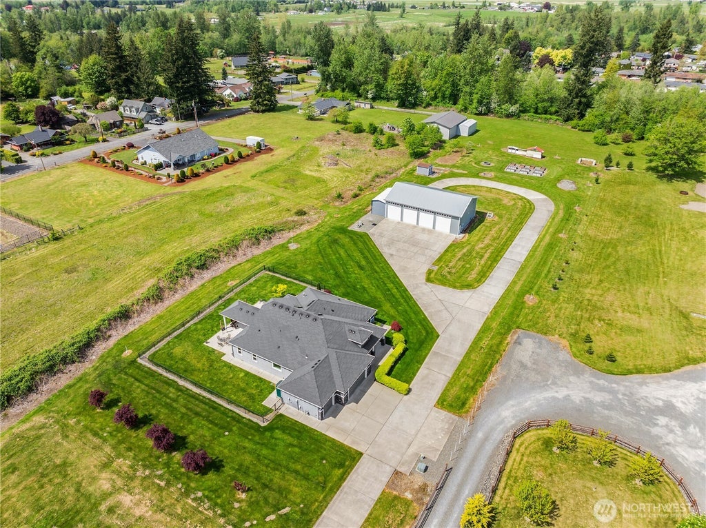 Mt. Rainier & foothill views at this 2018 Garrette Custom Homes resale on 2.82AC in city limits of Enumclaw w/ 4 beds, 2.75 baths, & 3,550SF. Open concept kitchen w/ granite CTs, SS appliances, double oven, adjacent dining room, coffee bar & island seating. Spacious living area w/ gas fireplace. Primary bedroom w/ private 5pc full bath includes WIC, custom no step shower, garden tub, & tile floors. Laundry/utility room w/ tile floors & mud sink. Bonus room up w/ 3/4 bath & 4th bedroom. 40'X60' detached shop w/4-bays, 1 drive-thru, 12'X14' doors (w/openers), separate utility meters, spray foam & batt insulation, 400kBTU gas heater, & 3/4 bathroom. Garden/tool shed, compost area + 10- 4'X8' raised garden beds. 90% efficient gas furnace w/AC.