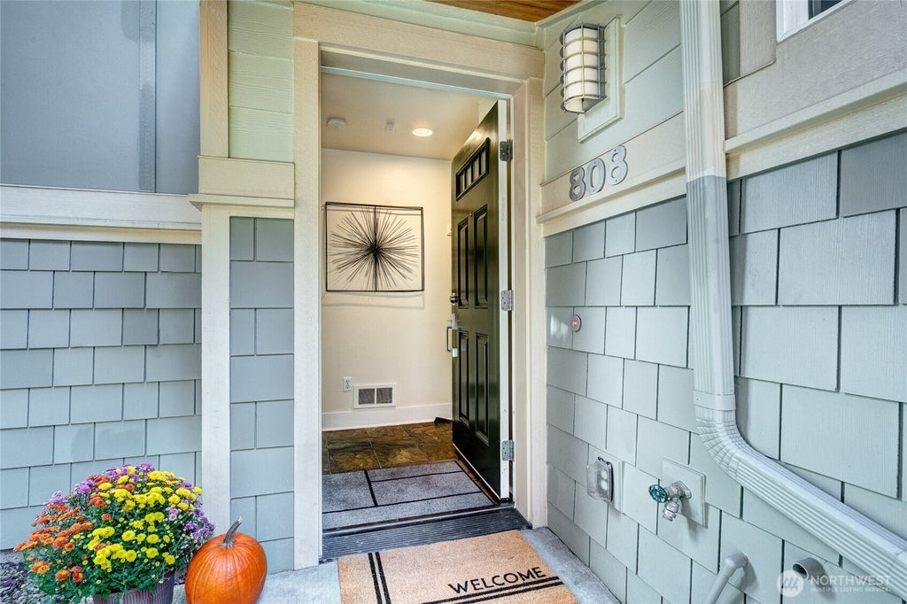 This bright and welcoming townhome feels like a sanctuary amidst an urban hub. Inside, relax in an open concept living area, staying cozy by the fire while a pot of soup simmers in the oversized kitchen. Stunning hardwoods give timeless style to the space. Head upstairs to the bedrooms – both quiet and with peek-a-boos of the Shoreline treetops. Closets galore on this level! This end-unit also has an ultra-spacious 2-car garage-storage needs are covered. A serene private yard offers easy access to the Interurban Trail which leads to bus routes, grocery stores, parks, cafes, Pagliacci Pizza and more! 148th St light rail provides even more transport options. New roof in 2021. Located in a coveted school district, too. This may be the one!