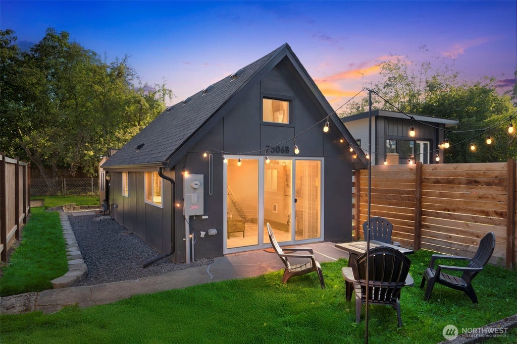 Welcome to this stunning remodeled rambler, blending modern style with cozy charm! This 1 bed, 1 bath home offers a spacious dining area, convenient laundry room, bedroom w/ vaulted ceilings & beautifully updated bathroom. The kitchen boasts stainless steel appliances, quartz countertops and opens to a vaulted-ceiling living room filled with ample natural light. Sliding doors lead to the fully fenced backyard—perfect for entertaining or relaxing. Large finished attic provides excellent storage. New roof, paint, siding & much more! Conveniently located w/ nearby shopping and quick freeway access. Move-in ready and full of thoughtful upgrades, this gem is waiting for you—come see it today!