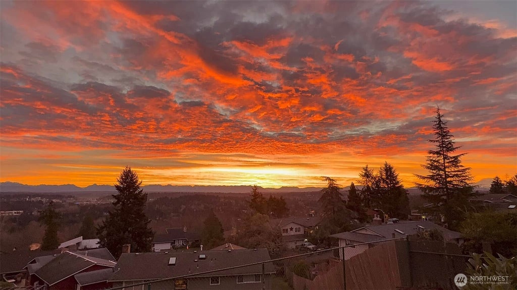 Wake up to breathtaking sunrises over the Cascades. Perfectly designed home features an open plan blending a chef’s kitchen, gathering area & den with panoramic mountain views. Superbly updated kitchen features gas cooktop, double oven, & huge island to prep & mingle. Sunbathed great room invites gatherings and opens to spacious deck for the perfect place to relax and entertain. The main level also offers a luxurious primary suite with fireplace & 2 walk-in closets, 2nd bedroom, flex room & full bath. Lower level includes a bonus room, 2 bedrooms, full bath & oversized utility room. Solar panels, new furnace & AC, fully fenced landscaped yard, quiet, private neighborhood. Convenient access to top schools, parks, shopping & commuter routes.