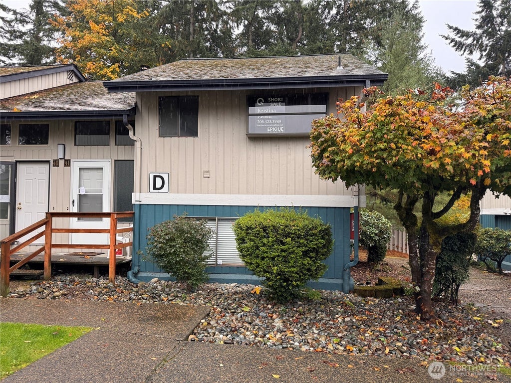 CASH ONLY 2 PARKING SPACES come with this secluded end-unit condo in Winchester Heights! This 3-bed, 2.5 split style unit is available as a short sale. Upper level features vaulted ceilings, wood stove, deck, half bath, utility room, open kitchen and living room floor plan. Lower level is 3 bedrooms and 2 full baths. Primary Suite with patio storage backs to a wooded area. plus 2 covered parking spaces. HOA covers water, sewer, garbage, basic cable, and more. Exterior painting is planned for spring. Great location just minutes from freeway access, Sounder train, and local amenities. Seller is not able to make repairs, so property is being sold As Is.