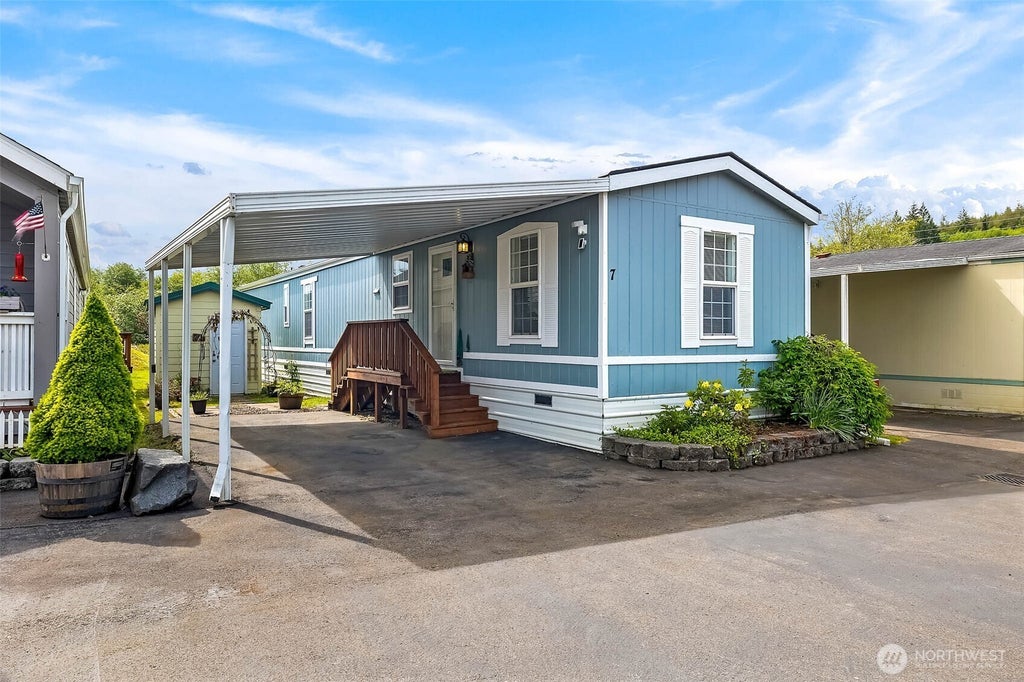 Comfortable living just outside of town! Riversbend Mobile Park offers #7 — a well-kept 2 bed, 3/4 bath one-level 1994 modular with detached outbuilding for storage. Inside you’ll find an open-concept kitchen and living area with updated flooring throughout and a mini-split for efficient heating and cooling. The kitchen features a split dual stove, maple cabinets, and beautiful countertops that add warmth and character. A newer washer and dryer are also included, making this home move-in ready. Enjoy two good-sized bedrooms and a nicely updated bath. Outside offers a roomy shed for extra storage. Space rent is $450/month and includes water, sewer, and garbage — a comfortable, well-maintained home that stands out in the park!