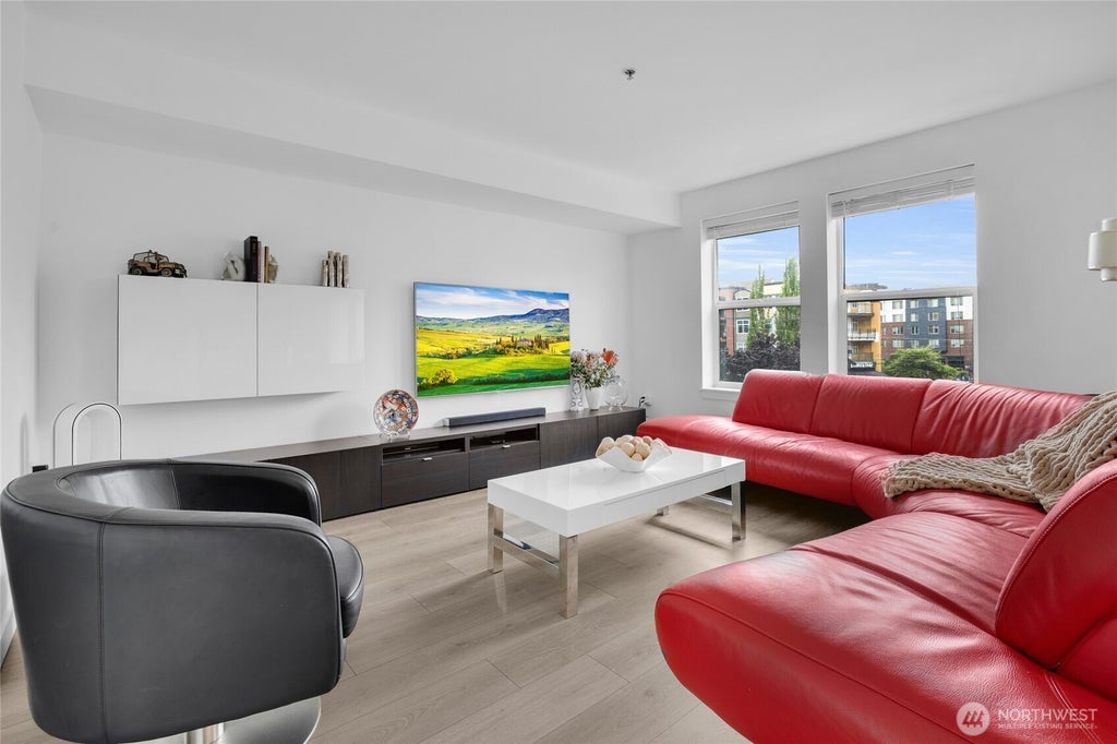 Steps from the shores of Lake Washington, discover this immaculate corner unit in the heart of vibrant Juanita Beach. Luxury upgrades include custom cabinetry, Bosch/Zephyr appliances, double waterfall quartz counters & premium laminate flooring throughout. Lives like a 3rd floor unit w/ tons of natural light filling the open & spacious layout. Enjoy the Friday Farmer's Market, tennis, volleyball, paddleboarding & summer movie nights at the park. 20+ dining options within a 5 minute walk - casual bites, weekend brunch, craft cocktails & more. 2 parking spaces + storage unit + ample guest parking in secure garage. Modern complex is super clean & well maintained. As an added bonus, NO HOA DUES for a FULL YEAR - prepaid by seller at closing!