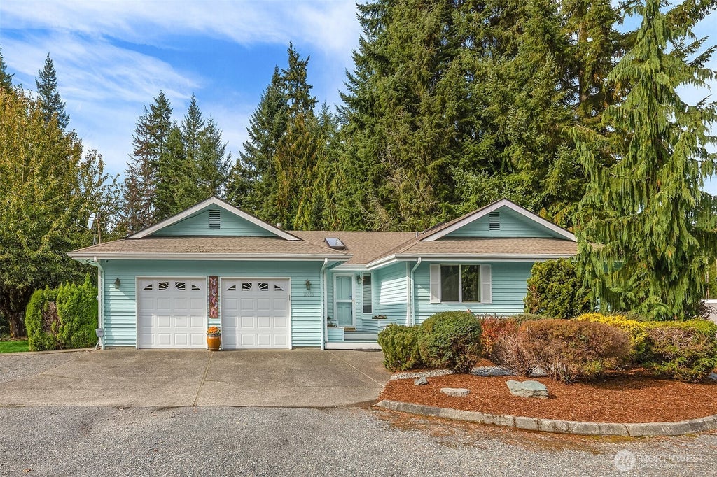 Beautiful, serene setting for this hard to find rambler on a shy acre in sought after Clearview! The property features attached two-car garage, plus a fantastic 30 x 40 sq ft heated detached shop, a full-sized covered RV pad & an additional outbuilding—ideal for storage or hobby space. Updated floorplan has a living room featuring a cozy gas fireplace w/ brick surround. Bright kitchen & open dining area. Primary bedroom has a huge walk-in closet & attached .75 bath. Entertain on the large, private deck overlooking the seasonal creek! New gas furnace, vinyl windows. A secluded yet convenient retreat nestled in nature, just minutes from Mill Creek, Woodinville and top-rated Snohomish Schools. You’ll love the peace & comfort this home offers!