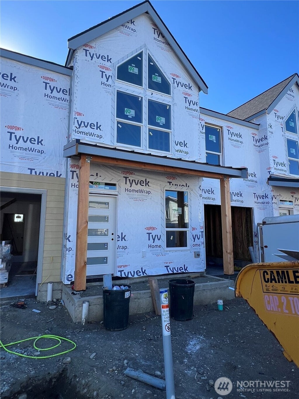 Welcome to Northview 2 in Cordata, Bellingham's premier solar home community! This stunning 2-story modern farmhouse design features an open and spacious floorplan, a custom kitchen with sleek quartz countertops, and a primary suite with an ensuite boasting a double sink and walk-in closet. Designed with sustainability in mind, enjoy efficient mini-split heat pumps with A/C, a partially fenced backyard, and EV charger prewiring. Light-filled interiors enhance the modern design. This beautiful 3-bedroom home backs up to a greenbelt for added privacy. Your dream home awaits—secure yours today!