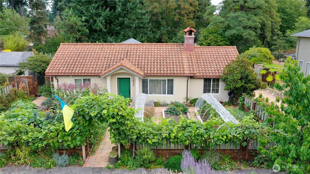 Quality-built, partially remodeled gem just ½ block from Hamlin Park and a short walk to Kellogg and Shorecrest. Garden lovers will appreciate raised concrete beds with supports, ready for your DIY greenhouse. NR3 zoning offers flexibility, with a perfectly sized lot for a DADU. Inside, 10 flexible rooms are bathed in natural light and centered around a cozy wood-burning fireplace. Updated bath with sleek glass shower, CAT6a, and audio wiring throughout. Outside, enjoy a solid tile roof, chicken coop, storage, a reverse-gravity stream water feature, a dramatic outdoor fireplace, new metal fencing, and a generous driveway—all set among towering evergreens for exceptional privacy. 2 car attached garage plus shop/potting shed/craft room off garage.